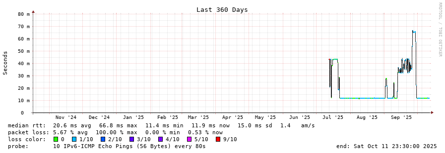 traceroute to dualstack.nonssl.global.fastly.net (2a04:4e42:77::204), 30 hops max, 80 byte packets - Generated at 2025-10-11 23:15:01