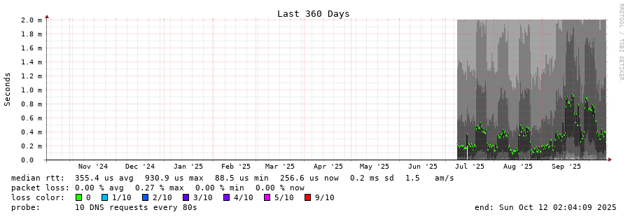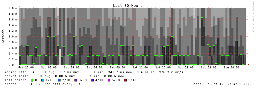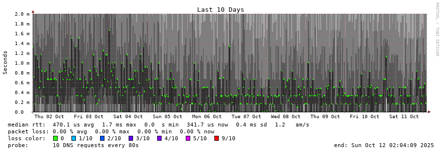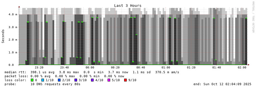 traceroute to 192.5.5.241 (192.5.5.241), 30 hops max, 60 byte packets - Generated at 2025-10-12 01:15:01 3 > f.root-servers.net (192.5.5.241) [AS3557] 0.137ms 0.181ms 0.111ms