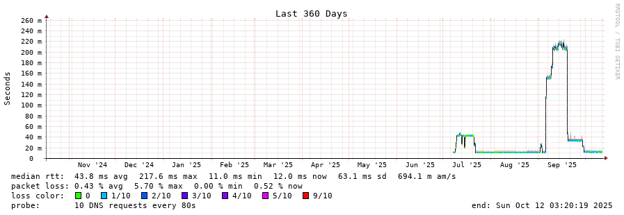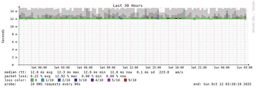 traceroute to 2001:7fe::53 (2001:7fe::53), 30 hops max, 80 byte packets - Generated at 2025-10-12 03:15:01