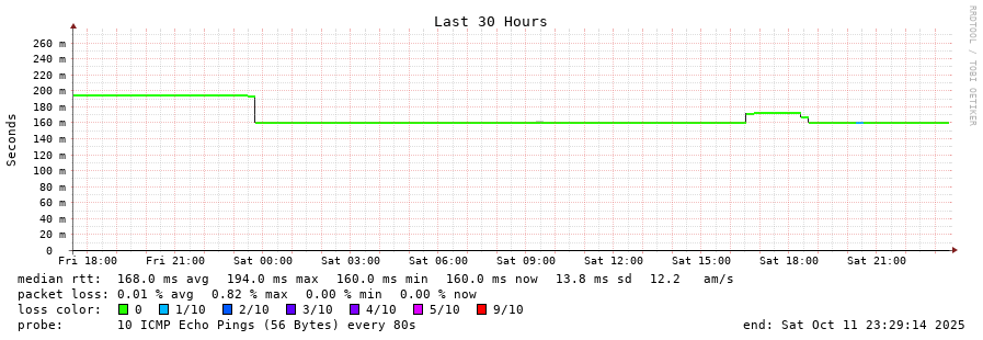 11 > 163.139.136.69 (163.139.136.69) [AS2519] 151.054ms 150.960ms 151.016ms