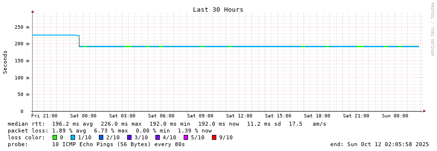 6 > be103.lax-la1-sbb1-8k.ca.us (192.99.146.129) [AS16276] 50.182ms 50.385ms 50.410ms