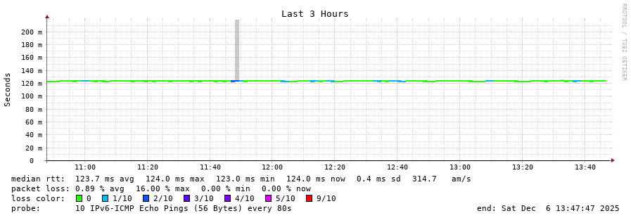 12 > 2001:4350:1:1::ff90 (2001:4350:1:1::ff90) [AS5438] 123.359ms 123.314ms 123.305ms