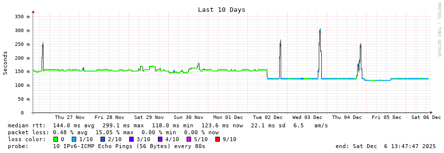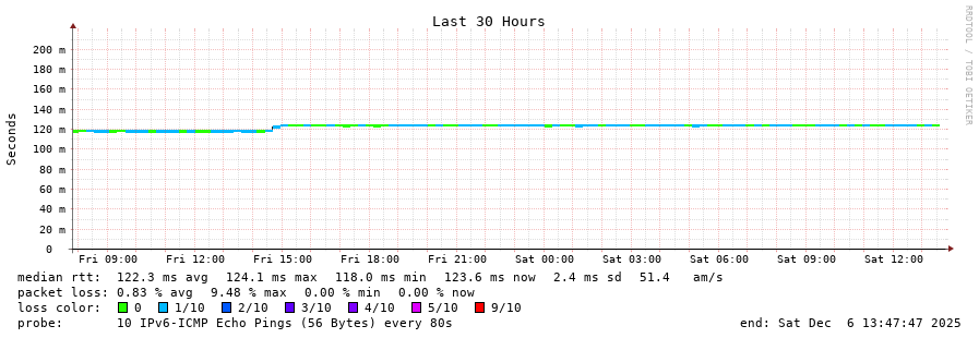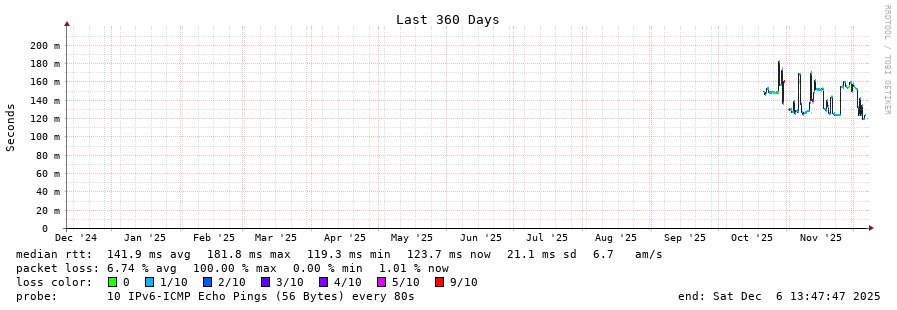 traceroute to 2001:4350:1:1::ff90 (2001:4350:1:1::ff90), 30 hops max, 80 byte packets - Generated at 2025-12-06 13:30:02