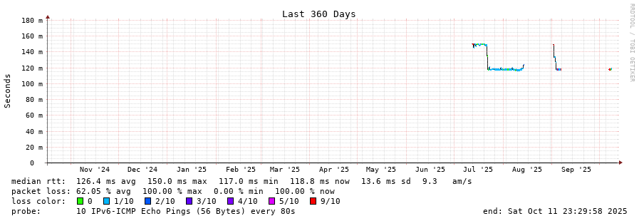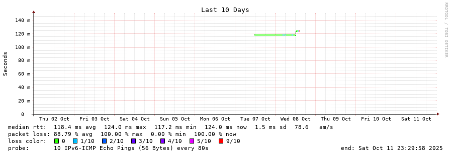traceroute to 2001:690:1fff:1600:eade:27ff:fec9:67ec (2001:690:1fff:1600:eade:27ff:fec9:67ec), 30 hops max, 80 byte packets - Generated at 2025-10-11 23:15:01