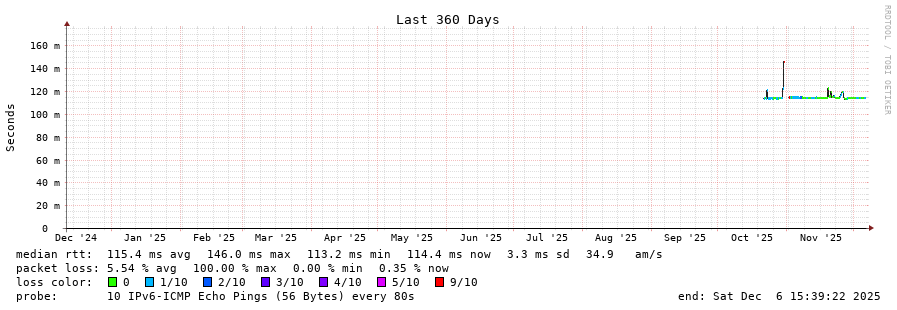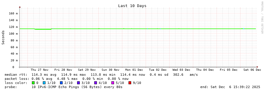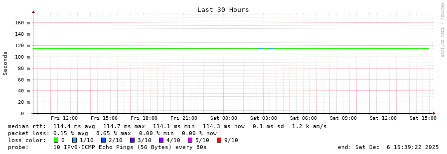 15 > 2001:b68:d::28 (2001:b68:d::28) [AS2108] 114.492ms 114.575ms 114.552ms