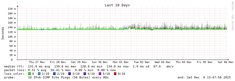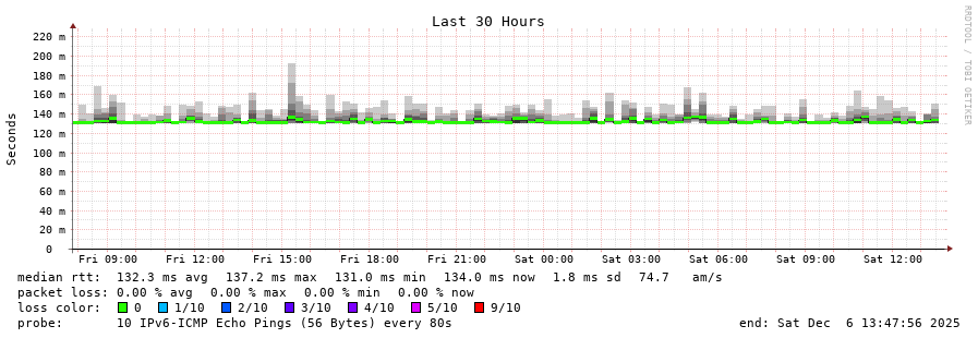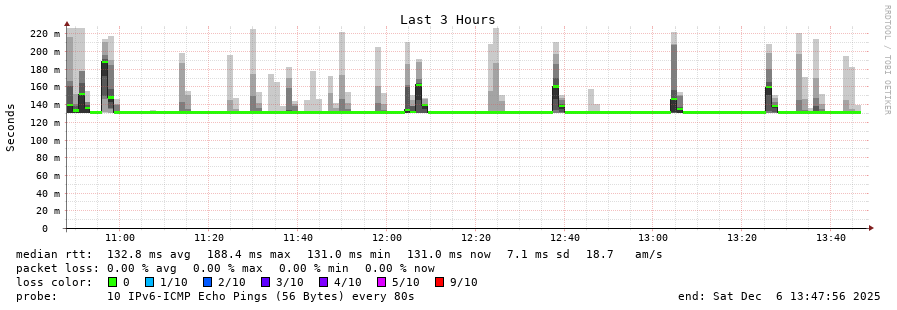 12 > 2a0c:9a40:8610:e3f::1 (2a0c:9a40:8610:e3f::1) [AS215362] 130.809ms 130.797ms 130.787ms