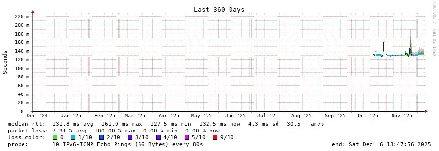 traceroute to 2a0c:9a40:8610:e3f::1 (2a0c:9a40:8610:e3f::1), 30 hops max, 80 byte packets - Generated at 2025-12-06 13:30:02