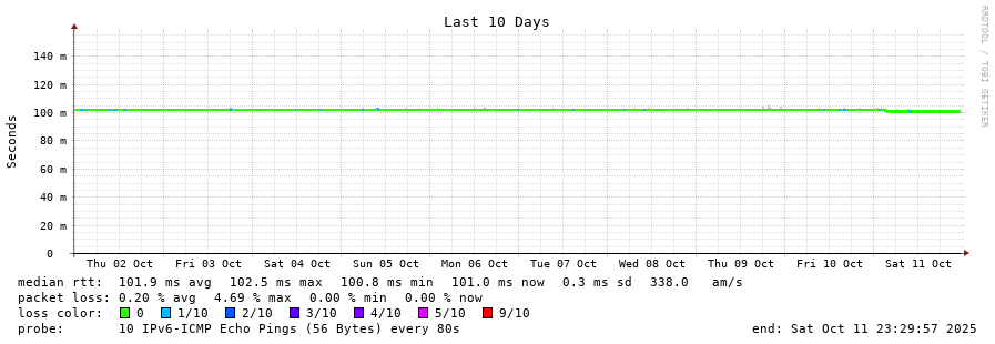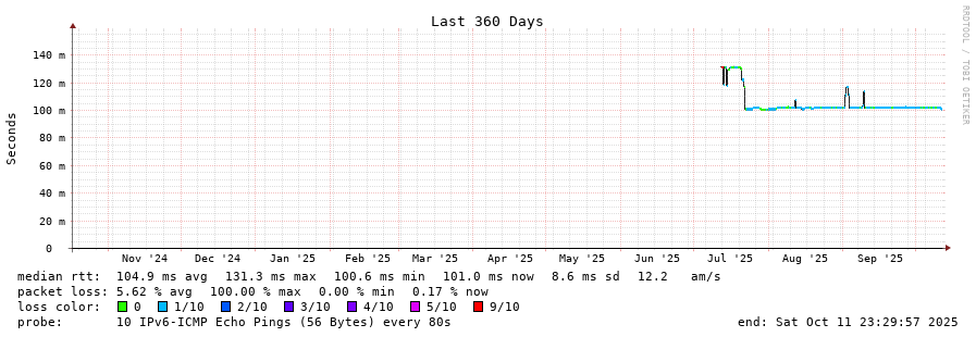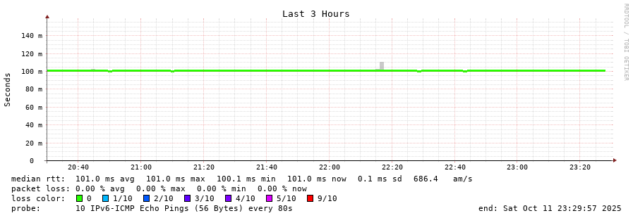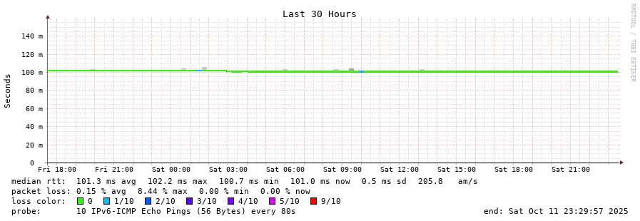 traceroute to 2a01:4f8:d0a:529e::2 (2a01:4f8:d0a:529e::2), 30 hops max, 80 byte packets - Generated at 2025-10-11 23:15:01