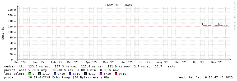 traceroute to 2a04:9dc0:0:a51::afaf:1 (2a04:9dc0:0:a51::afaf:1), 30 hops max, 80 byte packets - Generated at 2025-12-06 13:30:02