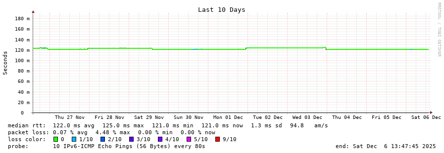 13 > 2001:ac8:10:10::d185 (2001:ac8:10:10::d185) [AS9009] 122.316ms 122.269ms 122.276ms