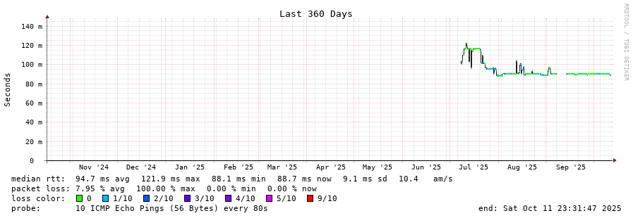 traceroute to 89.150.27.73 (89.150.27.73), 30 hops max, 60 byte packets - Generated at 2025-10-11 23:15:01