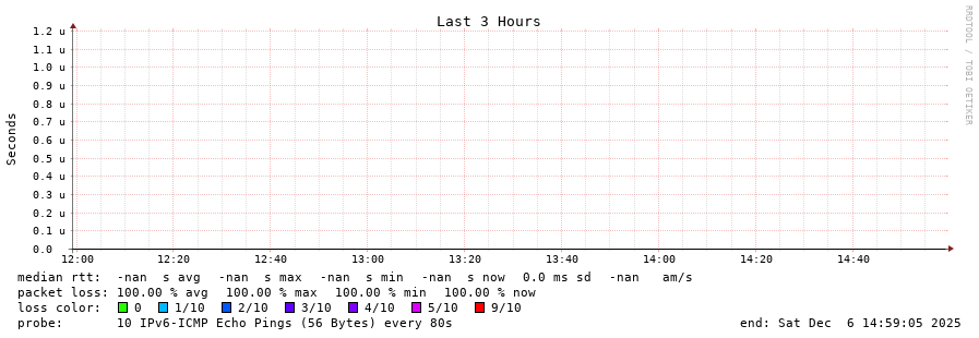 traceroute to fd9b:f75:a3d5::2 (fd9b:f75:a3d5::2), 30 hops max, 80 byte packets - Generated at 2025-12-06 13:45:01 3 > atl-b4-link.ip.twelve99.net (2001:2035:0:1f9c::1) [AS1299] 0.639ms !N0.858 ms!N