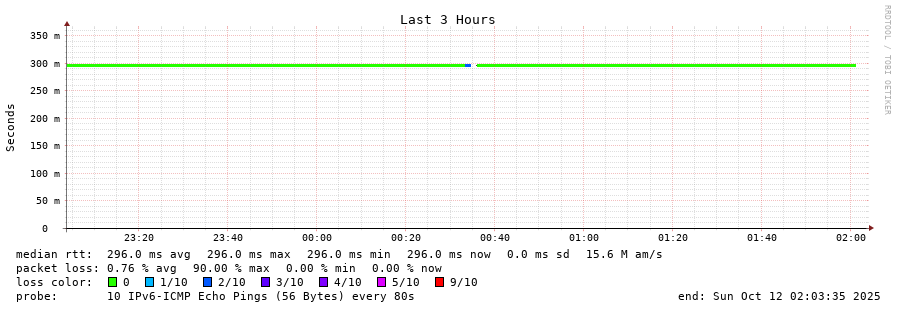 13 > 2402:1f00:ffff:fe00:1000::297 (2402:1f00:ffff:fe00:1000::297) [AS16276] 293.280ms 293.335ms 293.310ms