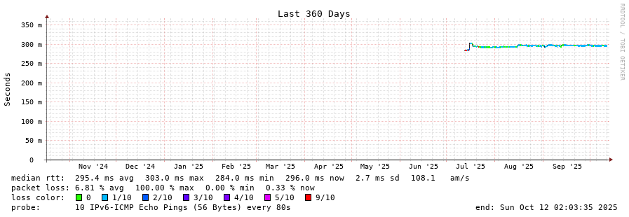 traceroute to 2402:1f00:8300:191:: (2402:1f00:8300:191::), 30 hops max, 80 byte packets - Generated at 2025-10-12 01:15:01