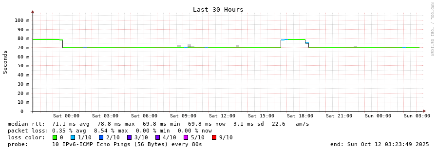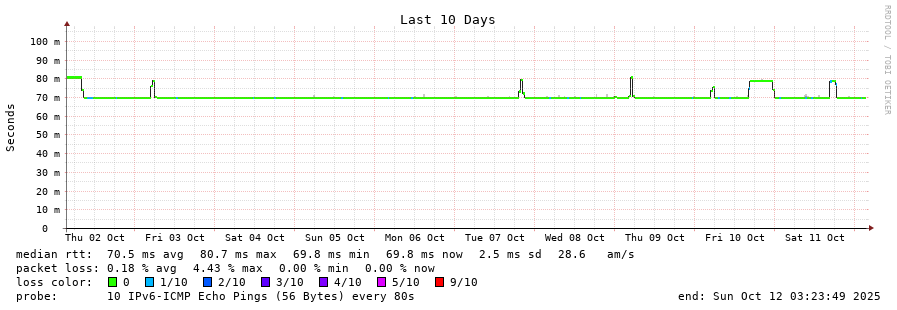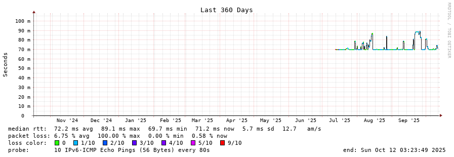 traceroute to 2604:2dc0:202:200::1f9 (2604:2dc0:202:200::1f9), 30 hops max, 80 byte packets - Generated at 2025-10-12 03:15:01