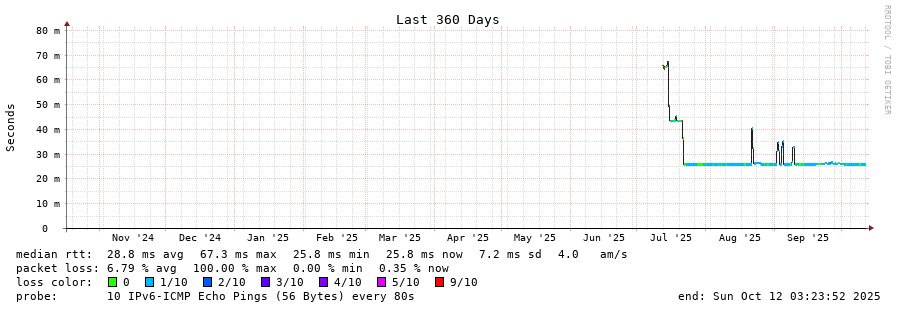 traceroute to 2607:5300:300:1f00:: (2607:5300:300:1f00::), 30 hops max, 80 byte packets - Generated at 2025-10-12 03:15:01