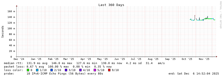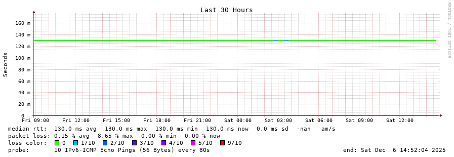 9 > buca-b3-v6.ip.twelve99.net (2001:2034:0:18a::1) [AS1299] 132.200ms 132.193ms 132.170ms