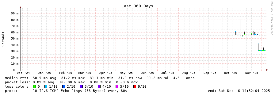 traceroute to 2604:2dc0:30c::2:0:4e (2604:2dc0:30c::2:0:4e), 30 hops max, 80 byte packets - Generated at 2025-12-06 14:45:01