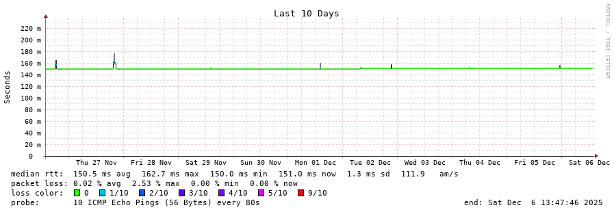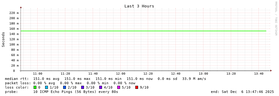 9 > 185.70.203.57 (185.70.203.57) [AS6762] 150.792ms 150.875ms 150.793ms