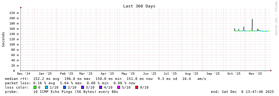 8 > 195.22.220.125 (195.22.220.125) [AS6762] 150.685ms 150.623ms 150.557ms