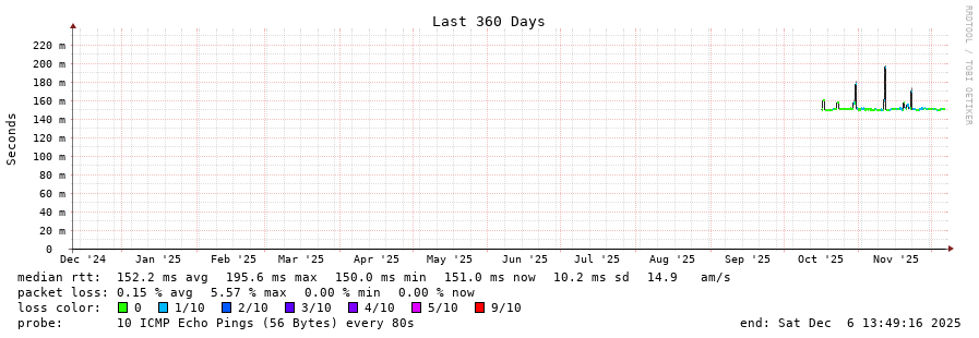 8 > 195.22.220.127 (195.22.220.127) [AS6762] 150.458ms 150.443ms 150.457ms
