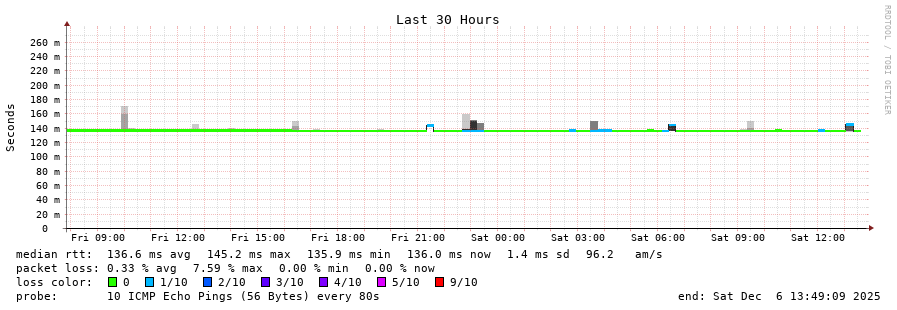 traceroute to 200.150.87.67 (200.150.87.67), 30 hops max, 60 byte packets - Generated at 2025-12-06 13:30:02
