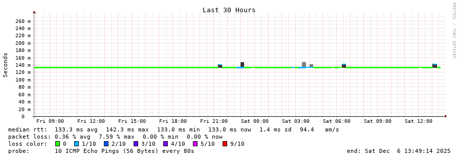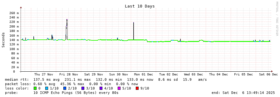 11 > 200.25.56.95 (200.25.56.95) [AS7195] 130.742ms 130.736ms 130.725ms