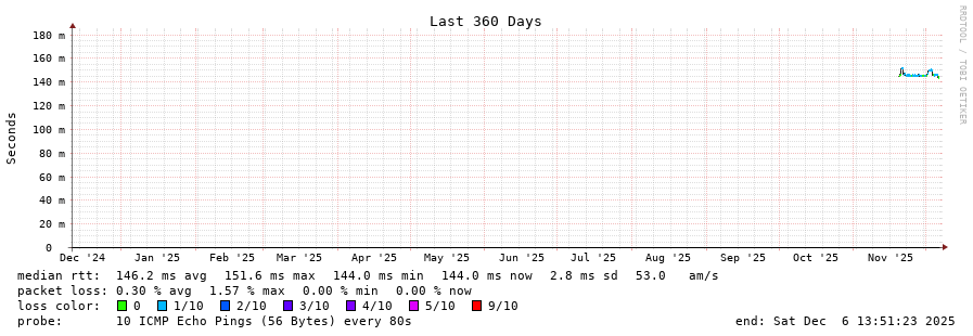 11 > 206.0.9.41 (206.0.9.41) [AS38193] 145.755ms 145.770ms 145.788ms