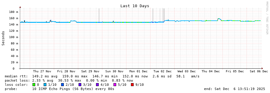 10 > PE-EDGE-MA2.brsulnet.net.br (177.66.28.169) [AS263656] 178.278ms 146.360ms 146.283ms