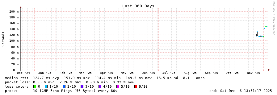 traceroute to 45.168.90.40 (45.168.90.40), 30 hops max, 60 byte packets - Generated at 2025-12-06 13:30:02
