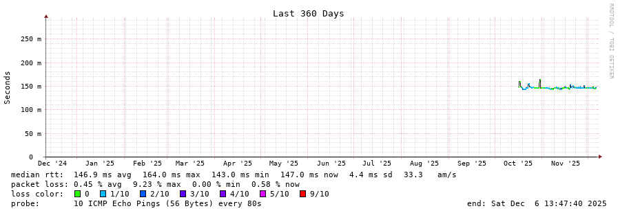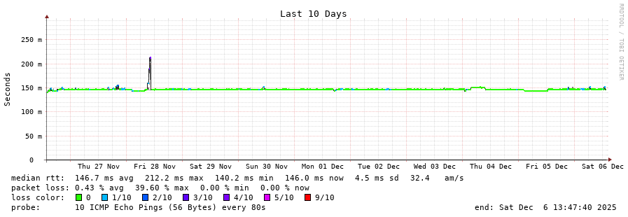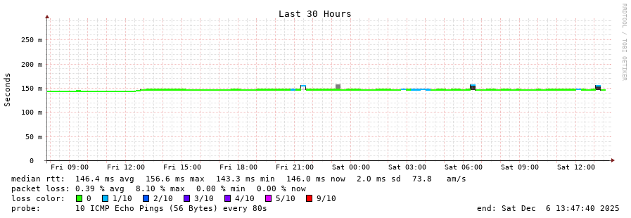 traceroute to 131.100.158.39 (131.100.158.39), 30 hops max, 60 byte packets - Generated at 2025-12-06 13:45:01
