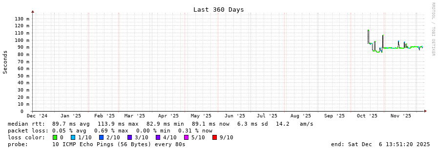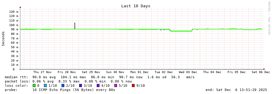 traceroute to 130.250.228.10 (130.250.228.10), 30 hops max, 60 byte packets - Generated at 2025-12-06 13:45:01