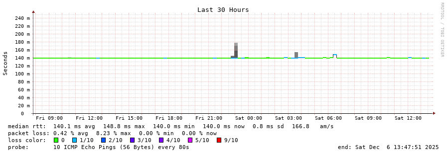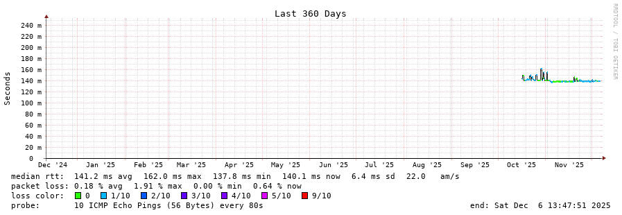 12 > 200.25.57.255 (200.25.57.255) [AS7195] 126.974ms 126.851ms 126.889ms