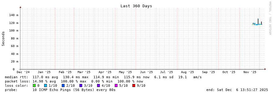 traceroute to 200.95.176.148 (200.95.176.148), 30 hops max, 60 byte packets - Generated at 2025-12-06 13:45:01