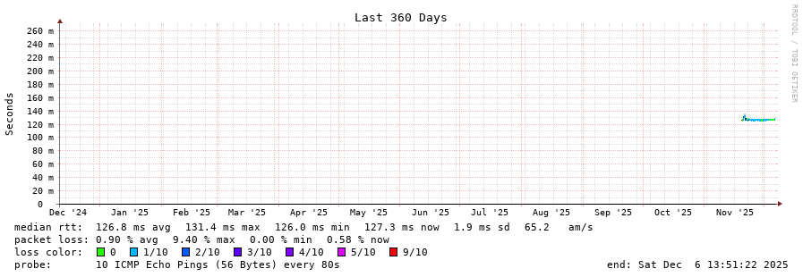 11 > 200.25.58.247 (200.25.58.247) [AS7195] 126.953ms 127.115ms 126.949ms