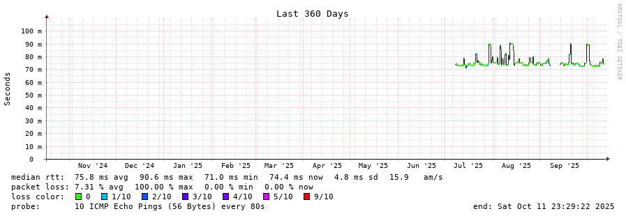 traceroute to 96.127.100.10 (96.127.100.10), 30 hops max, 60 byte packets - Generated at 2025-10-11 23:15:01