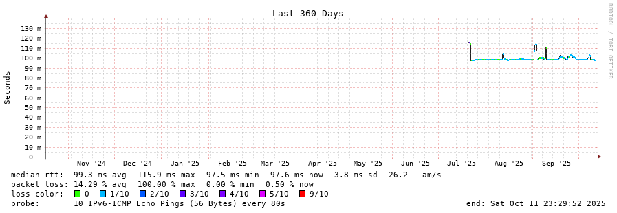 traceroute to 2001:49f0:d0b0:6::2 (2001:49f0:d0b0:6::2), 30 hops max, 80 byte packets - Generated at 2025-10-11 23:15:01