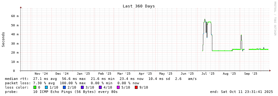 traceroute to 70.44.0.1 (70.44.0.1), 30 hops max, 60 byte packets - Generated at 2025-10-11 23:15:01
