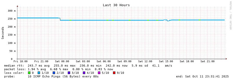 13 > 175.100.193.34 (175.100.193.34) [AS9304] 236.001ms 235.978ms 236.047ms