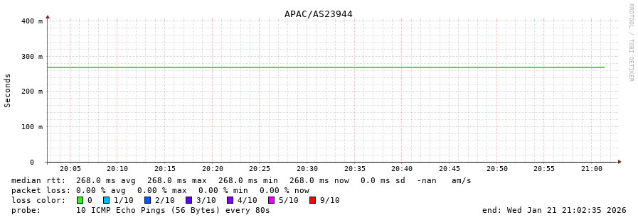 45. Median RTT 0.268 seconds