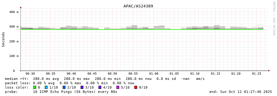 30. Median RTT 0.280 seconds