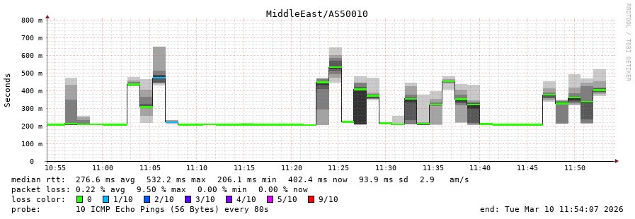 10. Median RTT 0.312 seconds